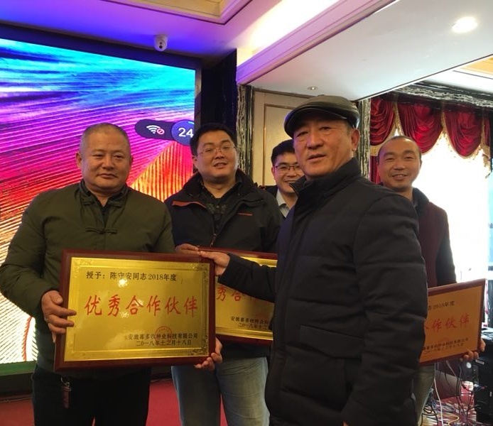 2018年12月17--18日在六安市永泰大酒店,來(lái)自金安區(qū)、裕安區(qū)、霍邱、壽縣等地的鄉(xiāng)鎮(zhèn)經(jīng)銷(xiāo)商和種植大戶等200余人歡聚一堂,共享2018年合作營(yíng)銷(xiāo)成功的喜悅、共商2019年合作經(jīng)銷(xiāo)共贏的計(jì)策。